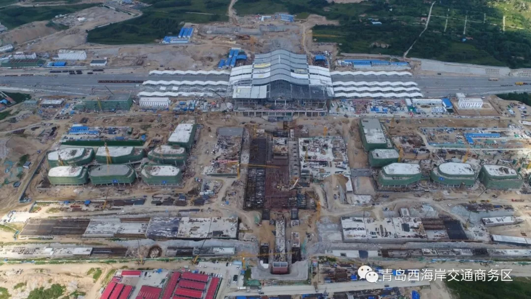 青島西站換乘中心及配套工程完成13個(gè)單體建筑主體結(jié)構(gòu)封頂